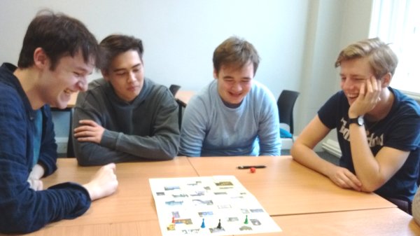 Players start at СТАРТ and have to get to ФИНИШ. Before each throw of the dice they have to answer the questions "Где ты? Куда ты идёшь?" or "Где вы? Куда вы идёте?". If they land where they wanted to, they get another go. If they land on СТОП they miss a go. If they land on a question square they answer a question about what they are doing there. If they land on the same square as another player they say hello and have a chat in Russian. If they land on ПОЛИЦИЯ they get a ПРОПУСК which allows them through the short route "ПРОХОД ЗАКРЫТ".
